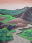 Imaginaire landschappen in acryl op canvasboard; landschappen in olieverf en aquarel naar de natuur