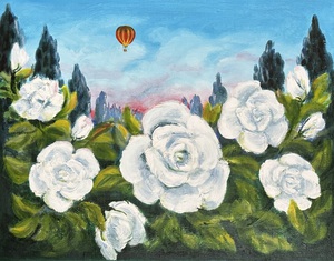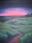 2008Na het opzetten van een bepaalde kleur ontstaat het landschap door een idee naar de lijnen die daarna in harmonierende kleuren volgen als vanzelf.